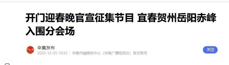 12日,央视春晚向全网征集新节目,有才之人皆可报名参赛,提前官宣主要目的是为了征集节目。